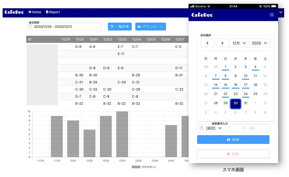 そんな声から昼食時に食堂のどの席に座ったかをスマホで登録できるしくみを1週間程度で開発しました。